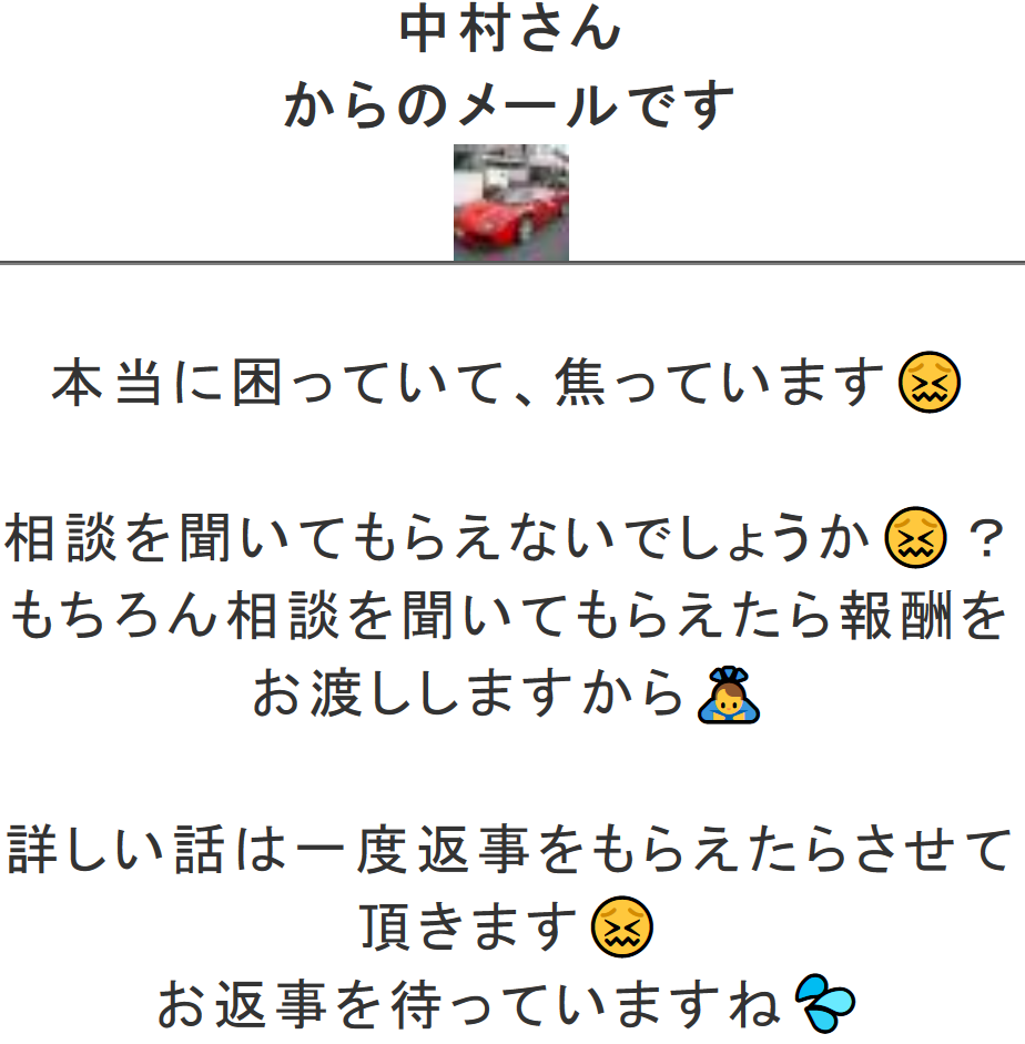 僕の悩みを聞いてくれたら「報酬○○万円受け取って下さい。」
