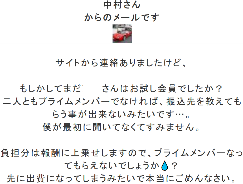 サクラの相手からも「メンバーじゃなかったの?報酬に上乗せするからメンバー登録して」などと煽ってきます。