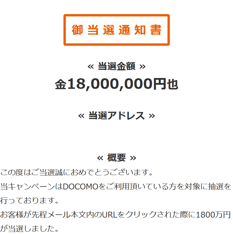 【補足】 手口とは(費用の要求)「1800万円が当選で本日中に受け取れます」などと迷惑メールを大量に送り付けてきて誘導してきます。(『GOTO DREAM』で送ってきます)