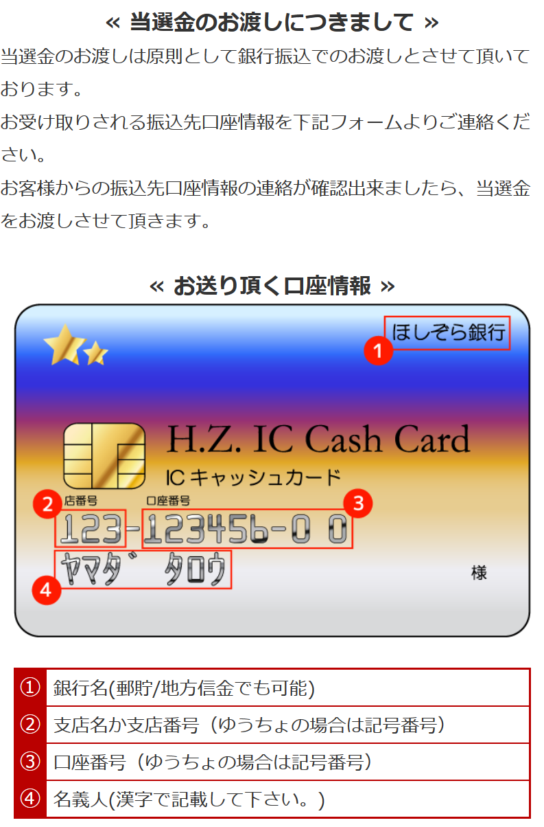 高額当選金を受け取るには、口座情報を送れと指示されます。