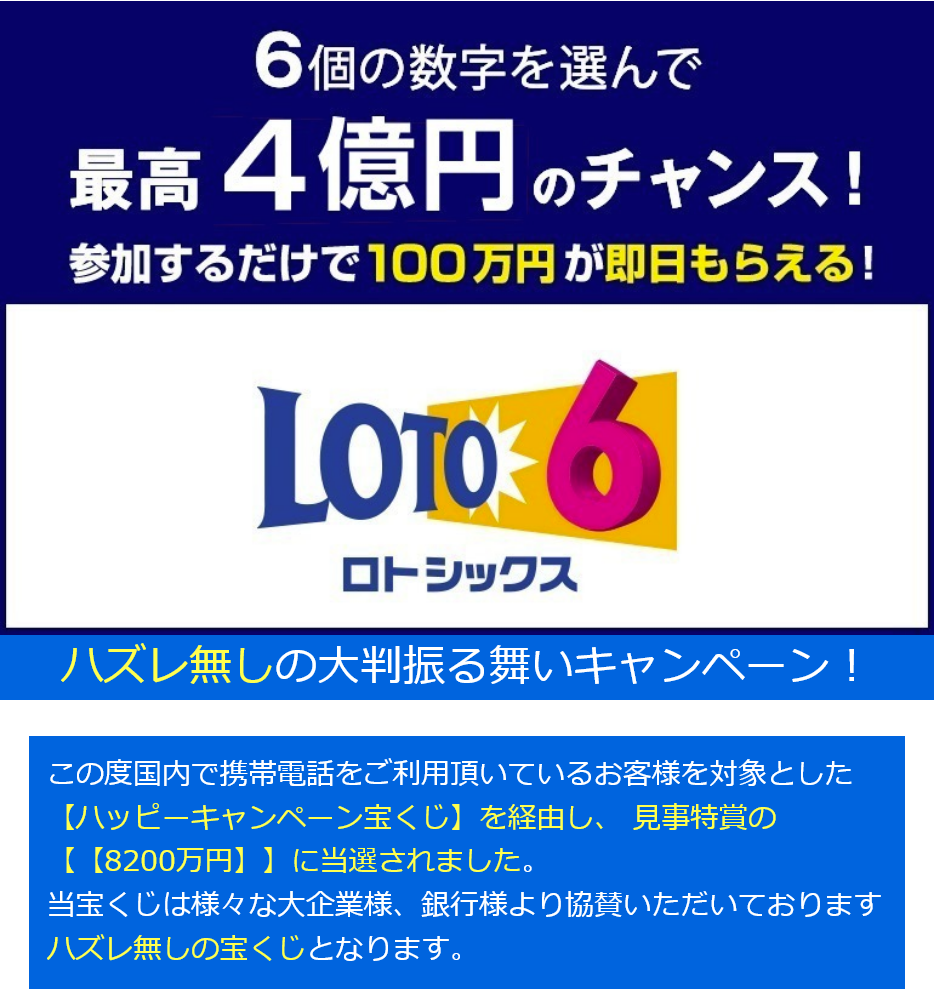 総合懸賞案内です。8200万円のお受け取りの権利を獲得しております。