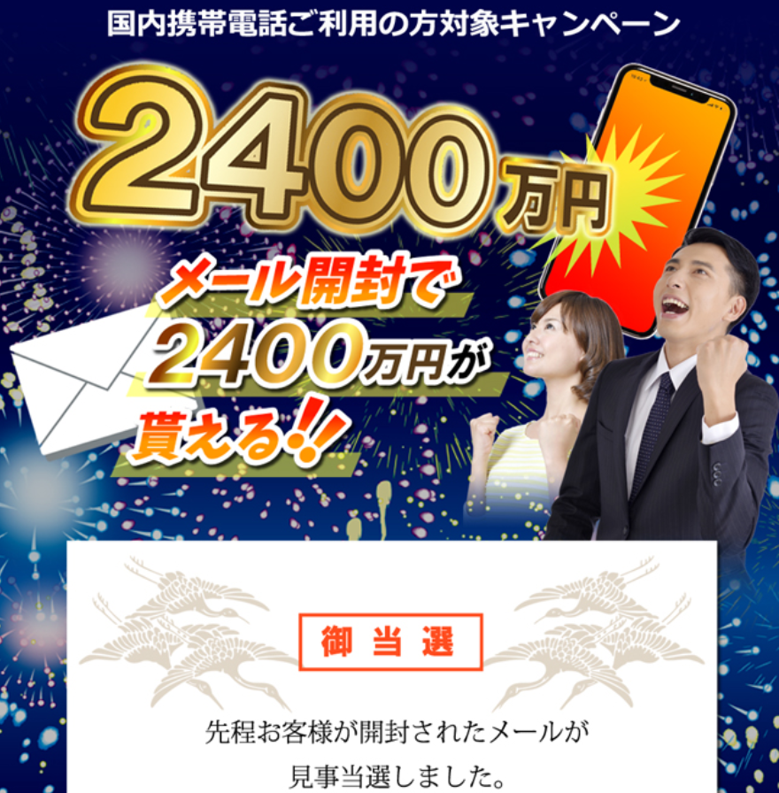 ご指定口座へ当選金2400万円のお振込みをさせて頂きました。