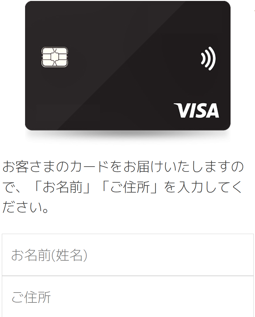 まず利用できるようにするには、カードを受け取らないと利用できず、名前・住所の入力を求められます。