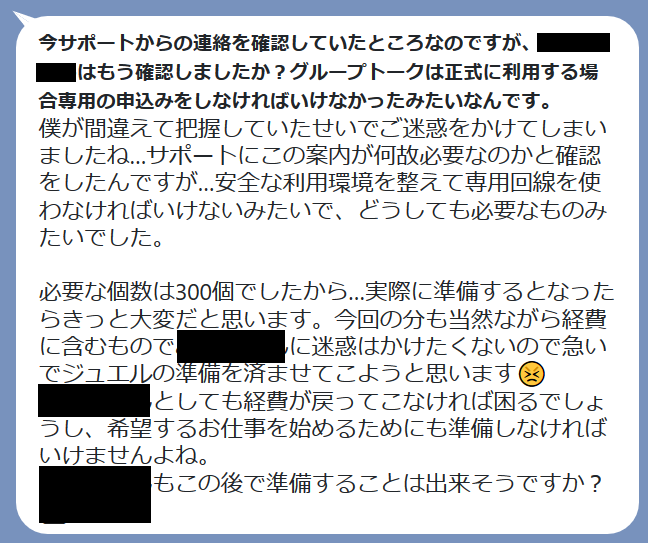 5000円を払いオフィシャルメンバーになったが、次は「150個のジュエルが必要」となり「1万円分のスタミナ購入すると100個ジュエルが貰えるから、購入して」となります。
