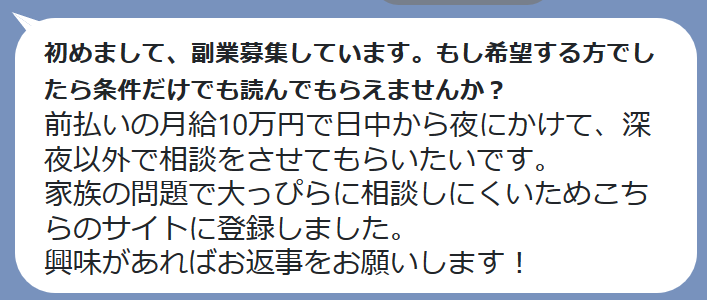 相談事を聞くだけで月に10万円も貰えると誘惑してきます