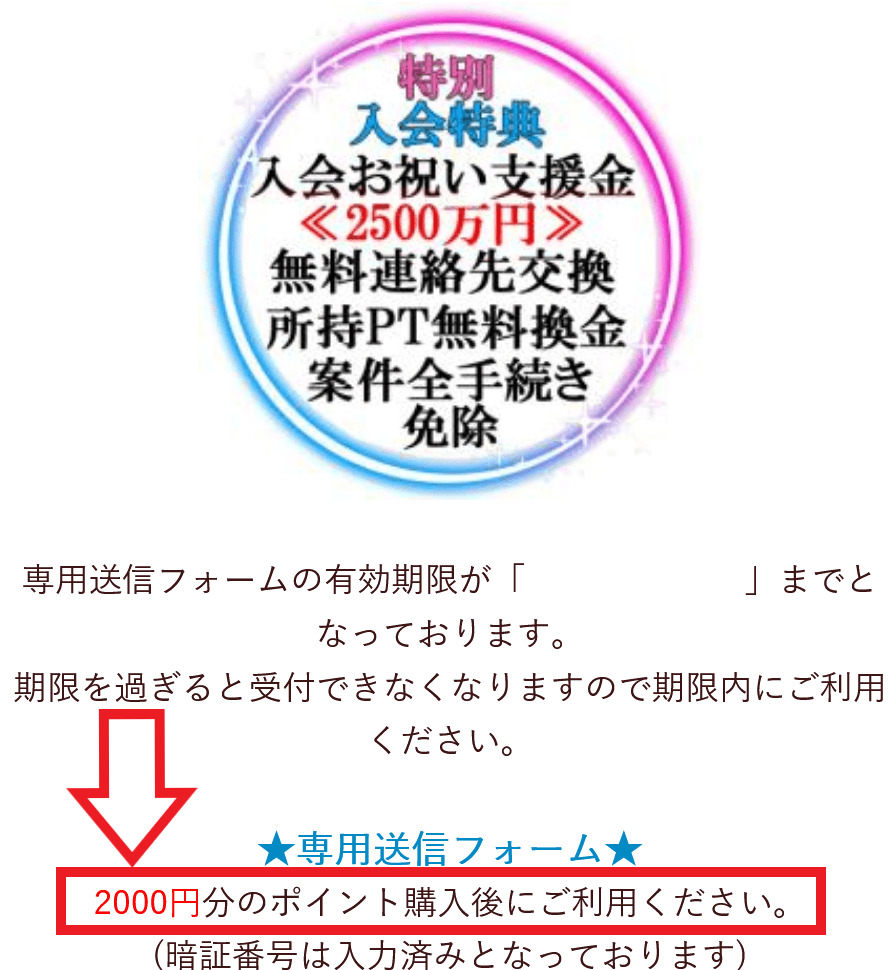 特典を受けるには「2000円分のポイント購入」を要求してくるのです。