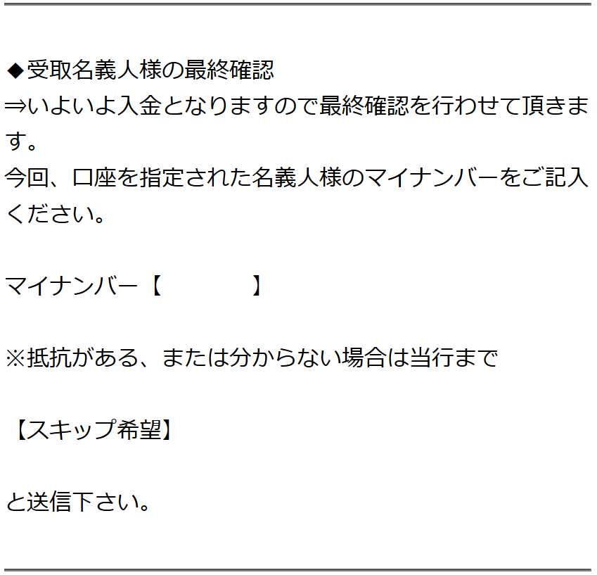なぜかマイナンバーを聞かれます。 マイナンバーを送ってしまうと ↓