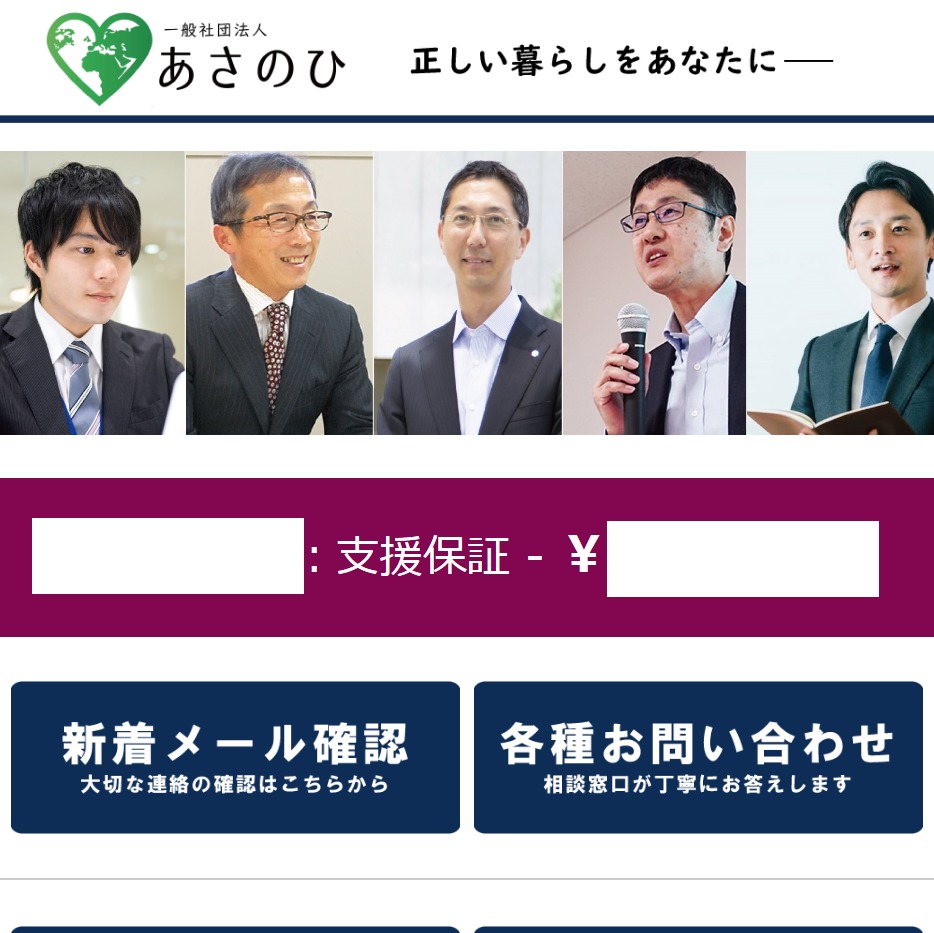 「一般社団法人あさのひ」と名乗る団体のサイトに繋がります。