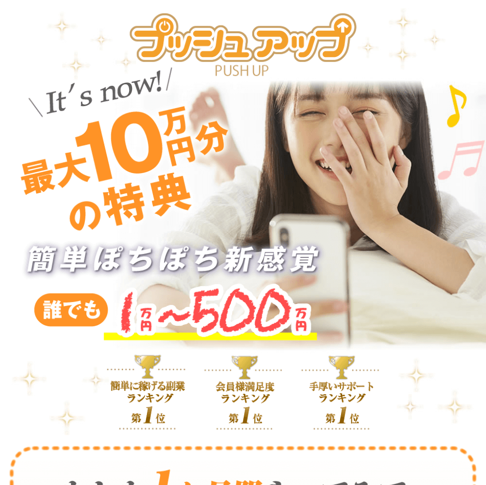 他にも、【push up(プッシュアップ)】を推奨するブログの存在をいくつか確認しましたが、それらも内容やビジネスモデルは明かさずに、ただただ「儲かる」と誘導しています。