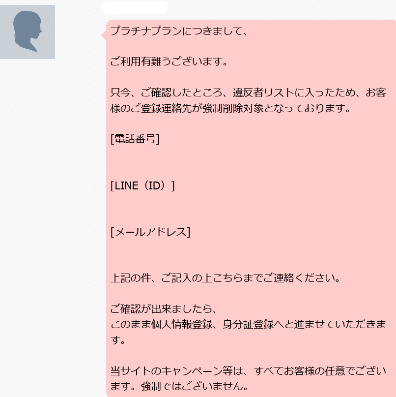 • 連絡先交換には同プランになる必要があると、高額な費用を要求