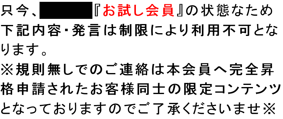 仮にお試し会員から本会員になって連絡先や待ち合わせ場所を送ろうとしても、送信できません。